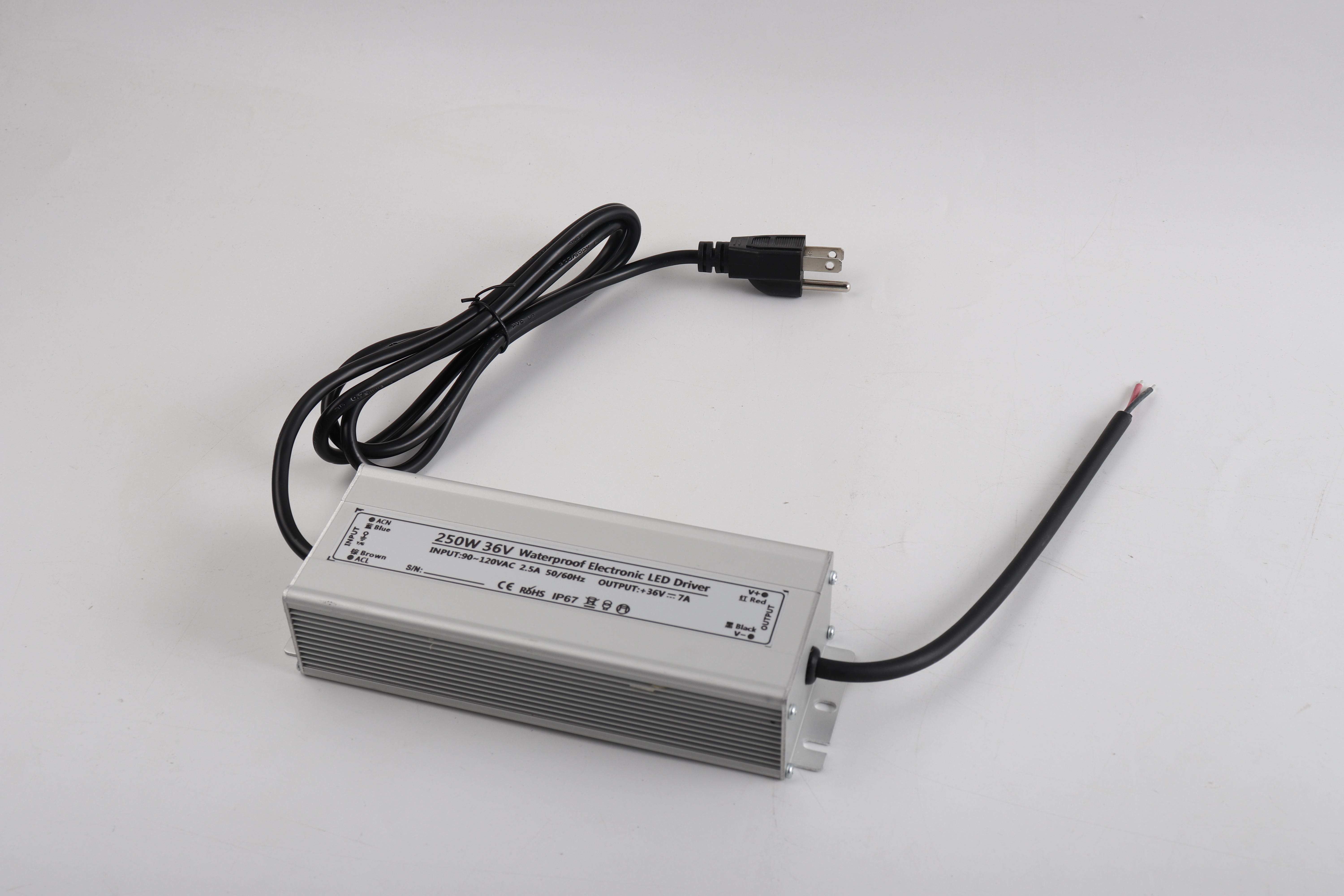 এলইডি আলো জন্য 250W জলরোধী অ্যালুমিনিয়াম উচ্চ দক্ষতা 36V নেতৃত্বাধীন পাওয়ার সাপ্লাই